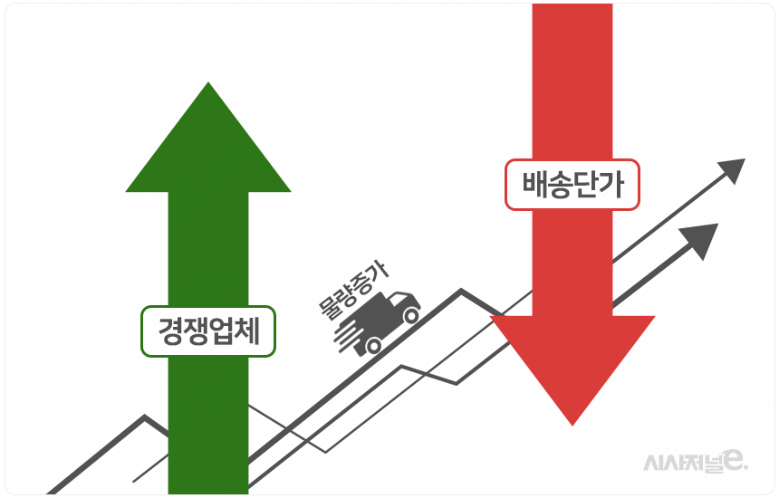 이러다 보니 혼자만 단가를 높이면 다른 업체에 고객을 빼앗길 수 밖에 없다는 게 업계의 시각이다. 더 많은 물량을 확보하기 위해 가격 경쟁을 벌이고 있는 상황인데다 물류 사업자가 늘면서 고객들의 선택의 폭도 넓어졌기 때문이다.