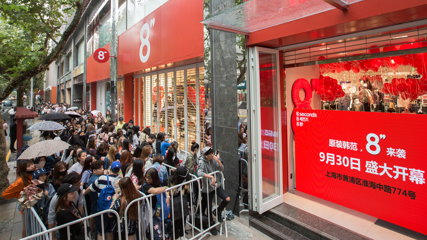 중국시장 진출도 활발하다. 삼성물산 패션의 스파 브랜드 에잇세컨즈는 상하이 중심부에 플래그십 스토어를 오픈했다. 에잇세컨즈는 애초에 중국진출을 염두하고 브랜드 명에 8을 포함한 것으로 알려졌다. 중국인들이 8이라는 숫자를 선호하기 때문이다.
