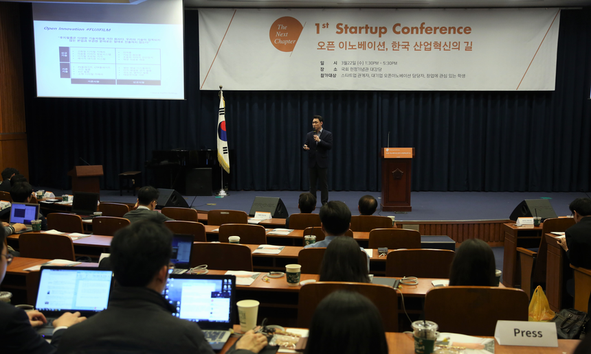 시사저널이코노미(시사저널e)가 주최하고 국회 제4차 산업혁명포럼과 미래창조과학부, 중소기업청이 후원하는 제1회 스타트업 컨퍼런스가 22일 국회 헌정기념관 대강당에서 열렸다. 혁신 기술을 지니고 성장 잠재력이 우수한 스타트업을 통해 성장의 새 동력을 찾기 위해서다. 스타트업 컨퍼런스가 주목한 것은 대기업과 스타트업이 공존하는 오픈 이노베이션이다.