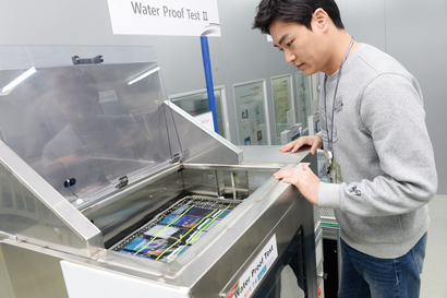 출시 제품 생산 라인에서 방수 시험은 실드박스(shield box)에 공기를 주입하는 방식으로 진행된다. 생산 라인 직원들은 모니터로 일정 시간 동안 공기 변화를 보고 방수 여부를 판단한다. 이밖에 통신 감도 테스트와 디스플레이 화면 회전 테스트, 사용자 기능 테스트 등이 차례로 진행된다. 이렇게 전제품이 품질 시험을 거쳐야 시장에 나갈 수 있다.