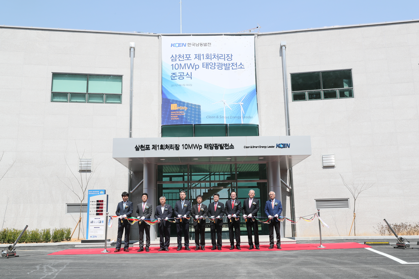 남동발전은 4일 경상남도 고성군 삼천포발전본부 제1회처리장에서 ‘삼천포 제1회처리장 10㎿p 태양광발전소’ 준공기념 행사를 열었다.