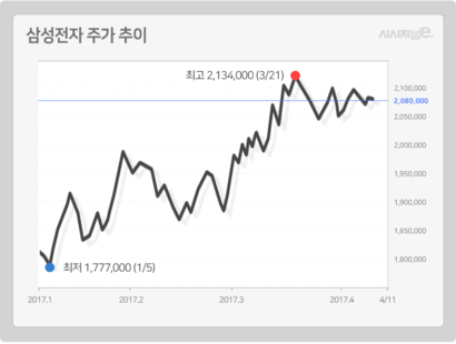 가파르게 상승하던 삼성전자 주가가 숨고르기에 들어갔다. 동시에 삼성전자 주가 향방에 대한 투자자들의 관심도 높아졌다. 대다수 증권업계 전문가들은 삼성전자의 질주가 지속될 것으로 내다본다. 올해 1분기 실적이 시장 기대치를 넘어선데다 신제품인 갤럭시 S8이 성공적으로 데뷔하면서 향후 실적 증가에 대한 기대감이 흐르기 시작한 까닭이다. 반도체와 디스플레이 업황도 호조를 보이고 있어 약점이 없다는 평가도 나온다.