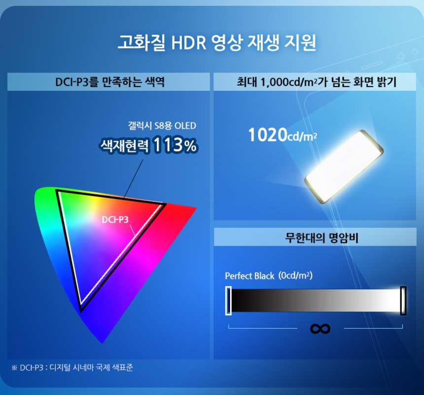 OLED 디스플레이는 스스로 빛을 내는 소재로 만들어져 액정 화면과 달리 백라이트(back light)가 필요 없다. 적은 면적을 차지하고 휘어져 얇고 독특한 디자인을 강조하는 프리미엄 스마트폰에 쓰이고 있다.