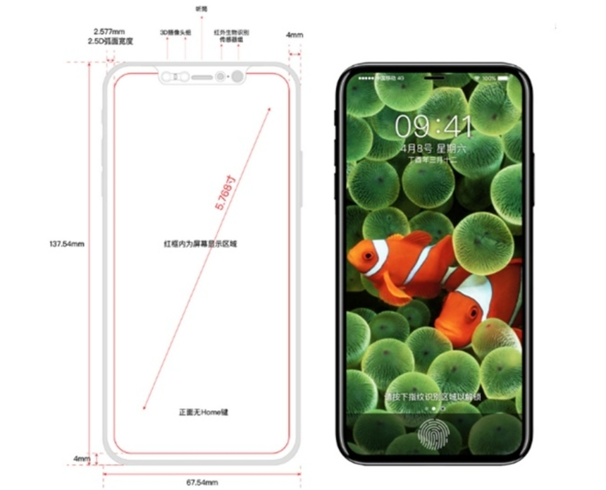 최근 중국 정보기술(IT)블로그 ifanr에 폭스콘 직원이 유출한 아이폰8 도면이라는 사진이 게시됐다. 폭스콘은 대만 홍하이그룹의 자회사로, 스마트폰 부품을 만드는 전자 제조업체다.