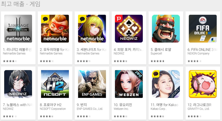 8일 관련 업계에 따르면 네오위즈는 최근 모바일게임 ‘노블레스’와 ‘피망 포커: 카지노 로얄’을 구글 플레이스토어 최고매출 순위 10위권 내에 진입시키는데 성공했다. 8일 기준 피망 포커는 최고 매출 4위를, 노블레스는 7위를 기록하고 있는 상황이다.