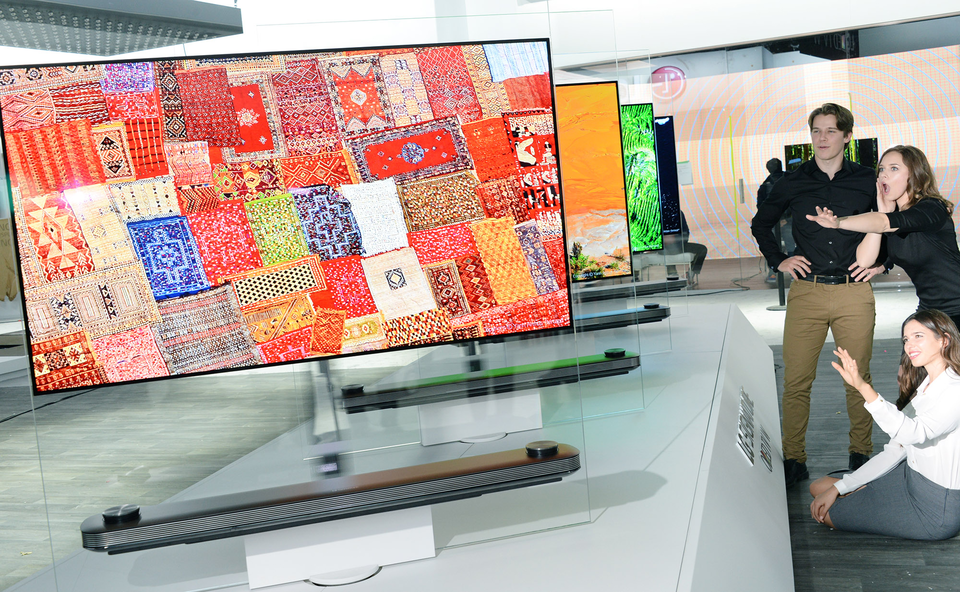 LG전자는 최근 3300만원에 달하는 TV를 내놓아 업계 안팎의 주목을 받았다. 크기는 삼성전자 QLED보다 조금 더 큰 77형이다. 2월 말 먼저 출시된 65형(163cm)보다도 커졌다. ‘LG 시그니처 올레드 TV W’는 설치 시 두께가 6mm 안팎에 불과하다. LCD(액정표시장치) TV와 달리 OLED(유기발광다이오드) TV는 백라이트가 필요 없어서 두께를 얇게 하는 데 용이하기 때문이다. 이 덕에 올해 초 세계 최대 가전 전시회인 ‘CES 2017’에서 최고상 수상작이 됐다.