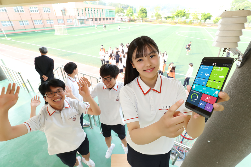 KT는 케이웨더와 함께 실내‧외 공기질 측정이 가능한 학교전용 ‘스마트 공기질 관리 솔루션’을 국내 최초로 경기도 양주시 한국외식과학고에 적용한다고 4일 밝혔다.