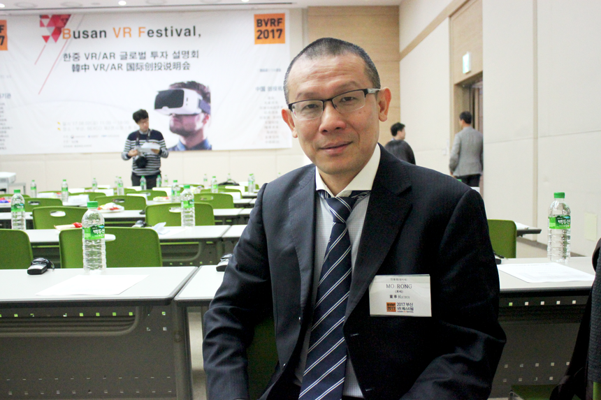 2일 한국VR산업협회와 미래창조과학부가 주최로 부산 벡스코(BEXCO)에서 열린 부산VR페스티벌 한‧중 투자설명회장에서 모 롱 창커제 대표를 만났다.