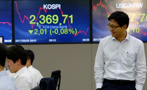 5일 국내 증시에서 코스피는 전거래일 대비 4.94포인트(0.20%)오른 2376.66으로 개장했다. 이어 장초반 2376.83까지 상승하며 장중 사상 최고치를 다시 썼으나 기관 매도 물량에 하락세로 전환했다. 오전 9시 50분 현재 코스피는 전일대비 5.06포인트(0.23%) 하락한 2366.66에 거래되고 있다.