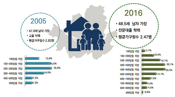 지난해 서울에 거주하는 보통가구의 모습이 10년 전과 달라졌다. 서울시민의 가구원수는 10년 새 0.36명 줄어든 것으로 나타났다. 소형가구화가 진행되는 상황이다. 또한 월세가구 비중도 늘어나고 있다. 소형가구화, 저금리 기조가 장기간 이어진 결과다. 특히 30대의 절반 이상이 월세에서 거주하는 것으로 나타났다.