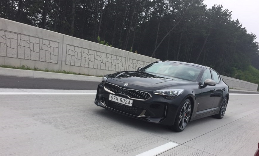 시동을 걸고 시내를 빠져나가는 동안에는 튀는 외모 탓에 주변 차량들의 시선을 부담스러울 만큼 한껏 느낄 수 있다. 제2영동고속도로에 들어서 주행 모드를 스포츠 모드로 변경한 뒤, 가속 페달에 힘을 주며 급가속을 시도하자 순식간에 시속 100㎞를 넘었다. 1.7톤에 달하는 공차 중량이 무색할 정도로 가볍고 빠르게 튀어 나간다. 스팅어의 제로백(정지상태에서 100㎞/h까지 도달하는 데 걸리는 시간)은 4.9초다. 국산차 가운데 가장 빠르다.