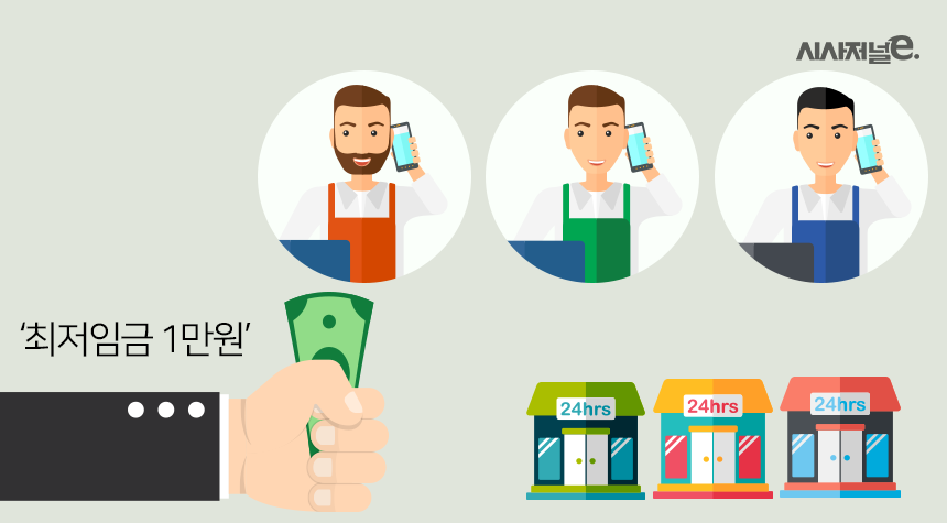 24시간 운영하는 편의점 특성상 점주는 아르바이트생을 고용할 수밖에 없다. 최저임금이 1만원까지 오르게 되면, 점주들의 인건비 부담이 커져 아르바이트생을 줄일 수 있다는 우려 섞인 전망도 나온다. 점주들은 “우리가 알바생을 뽑지 않으면 일자리가 줄어드는 것 아니냐”고 목소리를 높였다.
