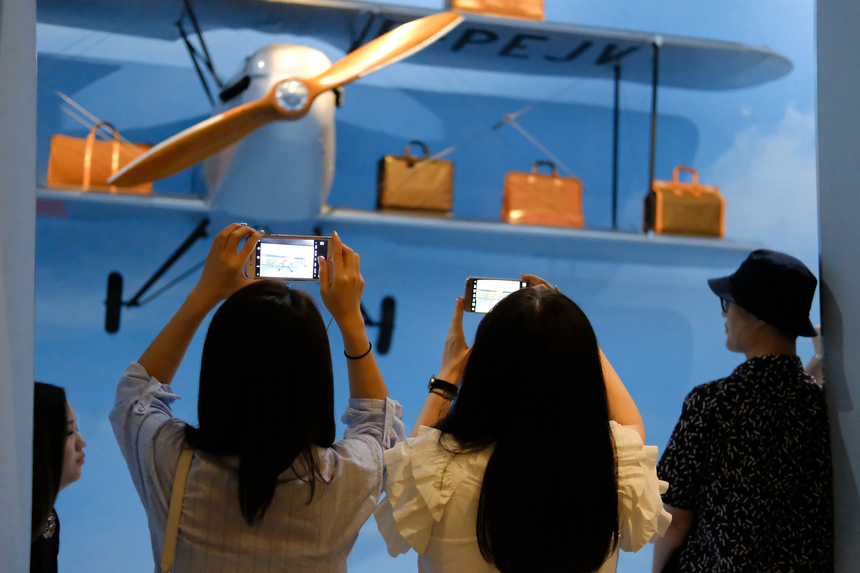 루이비통은 ‘비행하라, 항해하라, 여행하라’라는 주제로 프랑스 파리와 일본 도쿄에 이어 서울에서 국제 순회 전시회를 열고 있다. 전시회는 8일부터 8월 27일까지 이어진다. 특히 이번 전시회에서는 루이비통과 카카오프렌즈가 협업한 제품을 볼 수 있다. 전시회 둘째 날인 9일 서울 동대문디자인플라자를 찾았다.