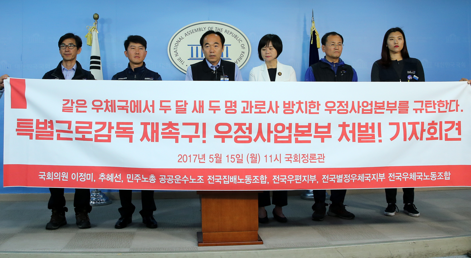 지난 8일 경기도 가평우체국에서 집배노동자가 과로사한 이후 집배노동자 격무에 대한 사회적 경각심이 높아지고 있다. 지난해 12월부터 올해 6월까지 이곳 가평에서만 세 명이 숨졌다. 이에 민주노총 공공운수노조 전국집배노동조합(이하 집배노조)은 정규직 신규인력을 늘리라고 요구하고 나섰다.