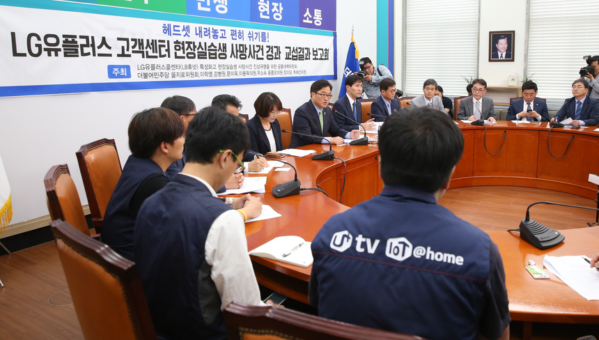 지난 1월 콜센터 현장실습생 홍수연양이 “콜수를 다 못채웠다”는 문자를 남기고 스스로 목숨을 끊은 데 대해 13일 원청인 LG유플러스도 책임을 인정했다.그럼에도 콜센터 감정노동자에 대한 근본대책은 아직 없다. 사고 재발을 막으려면 감정노동자 보호법 등 법제도적 보호책 마련이 시급하다. 여야간 다툼이 있는 쟁점법안이 아님에도 새 정부 출범후 다른 국정과제가 산적해 있는 상태여서 국회에서 법안 논의 시기가 마냥 지연될 수 있다는 우려가 제기되고 있다.
