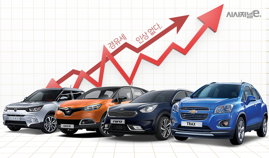 정부가 경유세 인상은 없다고 못박음에 따라 소형 스포츠유틸리티차량(SUV) 시장을 주도하는 국내 완성차 업체들이 한 숨 돌렸다. 경유세가 오르면 디젤 차량 비율이 높은 소형 SUV 시장에 악영향을 끼칠 수 있기 때문이다.