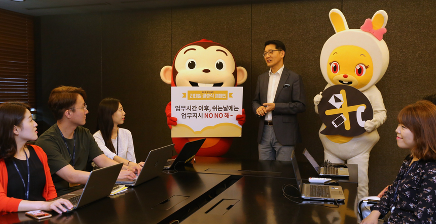 휴가나 대체휴가 등 쉬는 날과 퇴근 시간 이후에는 카톡 등 사회관계망서비스(SNS), 이메일, 전화 문자 등을 통한 업무 연락을 하지 못하도록 했다.