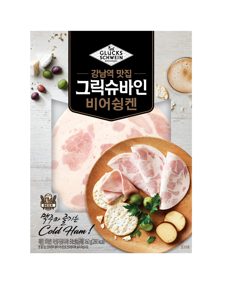 ‘비어슁켄’은 돼지고기 통살을 넣어 부드러우면서도 고기 씹는 식감이 느껴지는 것이 특징이다. 차갑게 먹는 독일 정통 콜드햄 타입으로 빵이나 크래커에 얹어 간단한 간식으로 즐기거나 시원한 맥주와 함께 곁들이면 고급안주로도 손색이 없다. GS25에서 판매되며 권장소비자가격 4,900원이다. (8개입, 중량 160g)
