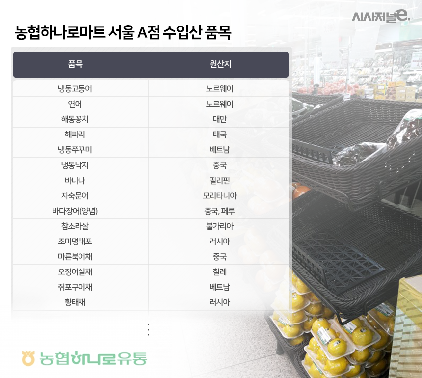 서울 직영점 농협하나로마트 한 관계자는 “소비자들이 주로 찾는 동태의 경우 국산이 잘 안나온다. 수산물 등에서 일부 수입산이 있다”고 해명했다.