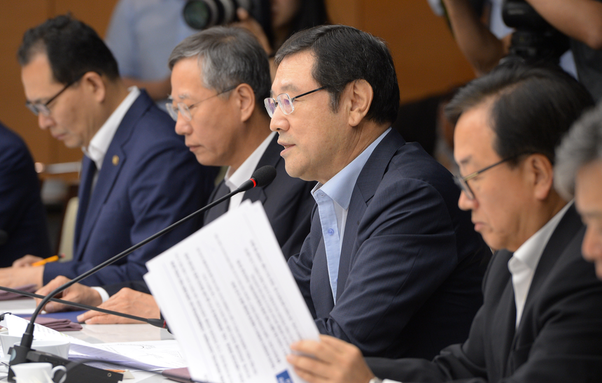 이용섭 일자리위원회 부위원장은 18일 대한상공회의소와 함께 근로자수 상위 10대 대기업과 5대 중소기업의 최고경영자들을 초청해 정책간담회를 개최했다. 일자리위원회는 일자리 정책방향을 설명하고 업계 애로사항을 듣고 하반기 양질의 일자리를 늘리는데 앞장설 요청하기 위해 이번 간담회를 마련했다고 밝히고 있다.