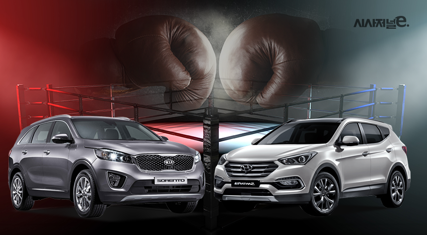 기아자동차가 중형 스포츠유틸리티차량(SUV) 쏘렌토 부분변경 모델을 새로 내놓으며 현대차 싼타페와 격차 벌리기에 나선다. 지난해 차지한 중형 SUV 시장 1위 자리를 굳건히 지키겠다는 계획이다. 한편 현대차는 내년 상반기에 싼타페 완전변경 모델 출시를 예고한 상태다.