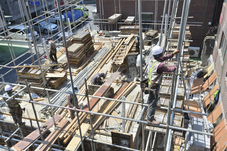 부진한 토목경기 및 건설투자에 신규 취업자수의 30% 이상을 차지했던 건설업 고용시장도 휘청거리고 있다. 통계청에 따르면 지난달 건설업 취업자수는 269만6000명으로 나타났다. 전년 동기 대비 31만명 가량 증가했다. 다만 월별 취업자수 증감폭을 보면 7월 증가규모는 10만1000명으로 전월(14만9000명)보다는 30% 이상 줄었다. 이에 따라 3개월 연속 16만명 이상 증가한 건설업 고용시장 호황이 마무리된 것이 아니냔 우려가 나오고 있다.