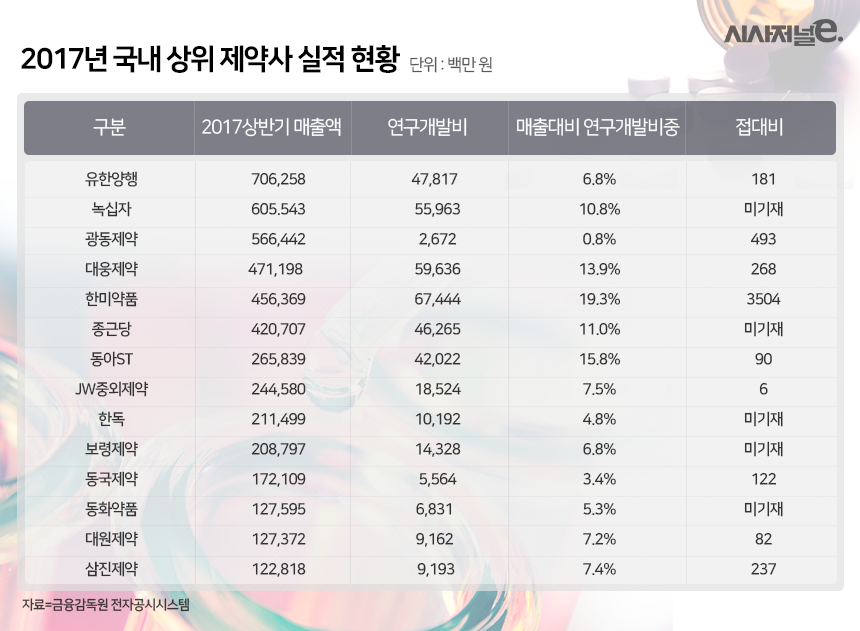 평균 접대비 19%↓…연구개발 투자액 1위는 한미약품