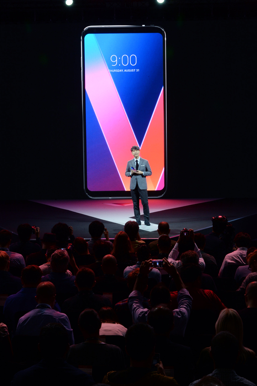 LG전자는 독일 베를린 마리팀 호텔에서 V30 언팩 행사를 가졌다. V30은 스마트폰 가운데 처음으로 조리개 값 F1.6 구현했다. 조리개 값이 낮아질수록 어두운 곳에서도 밝은 사진을 찍을 수 있다.