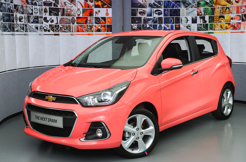먼저 자동차에 생명을 불어넣는다는 컬러‧트림 전시실로 이동했다. 경차 스파크가 내부에 떡하니 자리 잡고 있었다. 지난달 한국GM이 새롭게 선보인 코랄핑크 색상을 뒤집어쓰고 있었다.