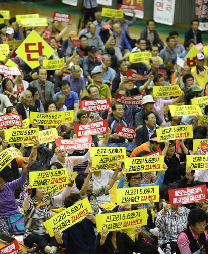 6일 원전건설중단반대 범울주군민대책위원회는 울주군 언양읍 군민체육센터에서 신고리 5·6호기 건설 추진 범국민궐기대회를 열었다. 이날 집회에는 울주군 지역주민과 단체장 등 1500여명이 참가했다.