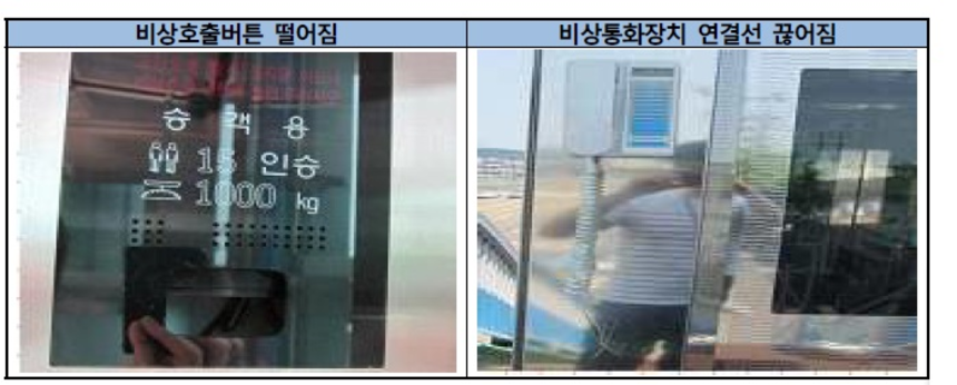 또 61대 중 11대(18.0%)는 승강기 검사합격증명서가 부착되지 않았거나 검사 유효기간이 경과된 것으로 확인됐다.