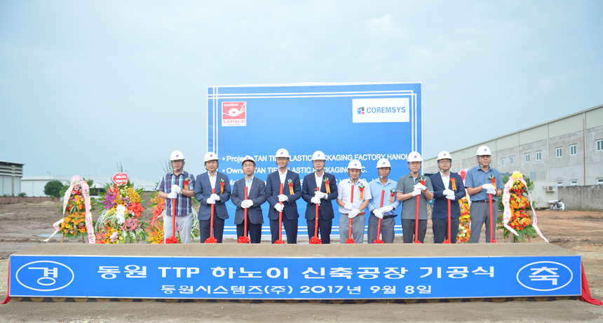 이날 동원시스템즈는 베트남 박닌성 공장 부지에서 착공식을 가졌다. 착공식에는 동원시스템즈 조점근 사장과 TTP와 MVP의 조정국 대표 등이 참석했다.