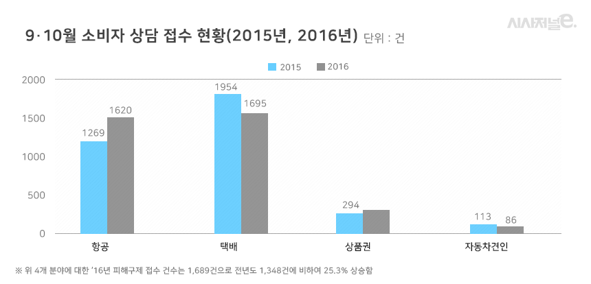 소비자원, ‘항공·택배’ 등 소비자 피해주의보 발령…4개 분야 피해구제 건수, 1348건에서 1689건으로 증가