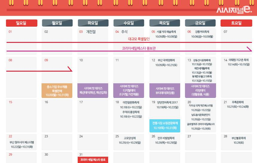 특히 이번 행사기간이 중국의 국경절과 중추절(10월 1~8일) 연휴와 겹쳐 유커들이 소비가 필요한 상황이지만 한반도 사드 추가 배치와 중국의 사드 보복 장기화로 기대하기 어렵게 됐다. 또 북한 미사일 발사로 한반도와 주변국 상황이 심상치 않게 돌아가면서 외국인 관광객의 방한 또한 주춤할 것으로 전망되고 있다.