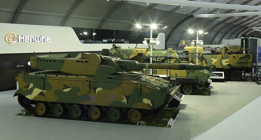 경전차도 실물로 만나볼 수 있다. 다양한 전술적 운용이 가능하기 때문에 글로벌 방산 시장에서도 경전차 개발이 한창이다. 성능이 검증된 K21 보병전투장갑차 차체에 105mm 포탑을 탑재한 K21-105 경전차(한화디펜스)가 실내 전시장에서 실물로 관람객을 맞이한다.