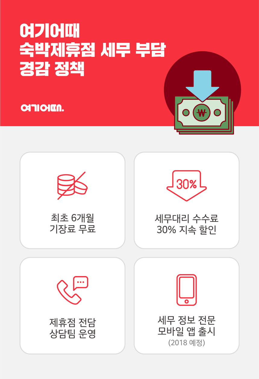 한편 현재 제휴점 350여곳이 세무 부담 줄이기 캠페인에 참여했다. 여기어때는 올해 안에 총 500개 제휴점이 참여해, 혜택을 얻을 것으로 기대한다고 밝혔다.