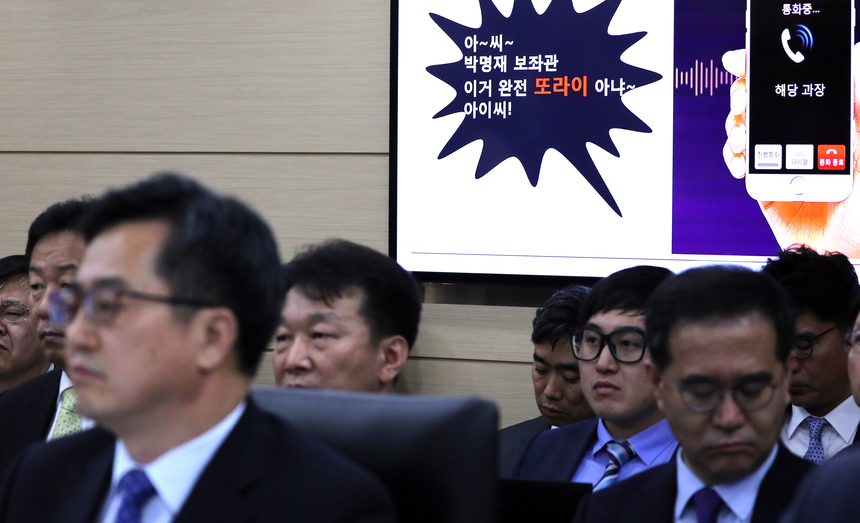 박명재 의원(자유한국당)은 이날 국감장에서 기재부 모 과장이 국감 자료를 요청한 의원실 보좌관을 ‘또라이’라고 지칭했다고 밝히고 A과장과 박 의원실 보좌관과의 통화 내용을 공개했다.