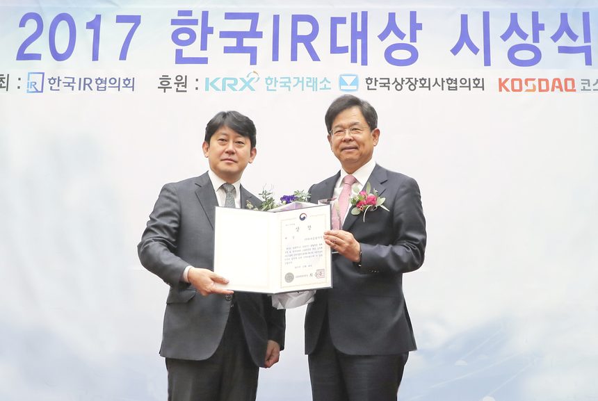 올해로 17회째를 맞은 한국 IR대상은 한국 IR협의회가 효율적 IR활동을 통해 기업, 주주, 투자자의 공동이익과 증권시장의 발전을 위해 노력한 IR 우수기업에게 수여하는 상이다. 이번 시상식의 기업부문 수상자 중 금융권에서는 하나금융그룹이 유일하다.