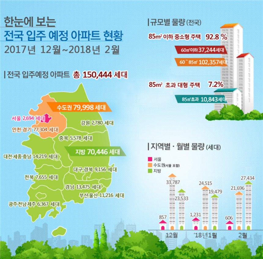 22일 국토교통부에 따르면 내달부터 내년 2월까지 3개월간 전국 입주예정 아파트는 총 15만444가구에 이른다. 이는 전년 동기(8만8000여가구) 대비 71% 증가한 수치다.