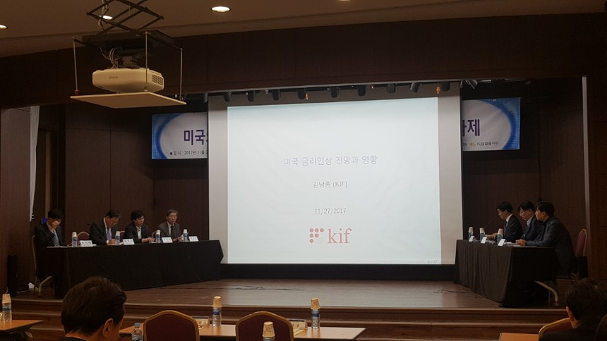 한편 이날 금융연구원 김남종 부연구위원은 세계 금융기관들이 내년 미국 기준금리 인상 횟수 전망치를 낮추고 있는데 불확실성 요인이 될 것이라고 전망했다. 도이치뱅크, 모건스탠리는 4회에서 3회로, 바클레이, 웰스파고는 3회에서 2회로 조정했다.