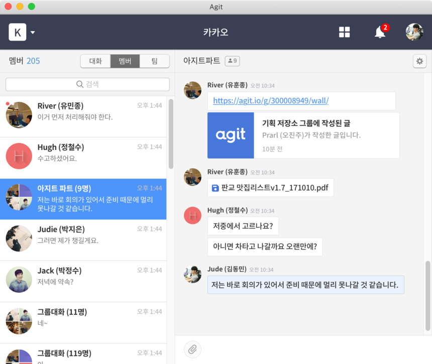 카카오는 30일 기업용 커뮤니티 서비스인 ‘아지트’의 커뮤니케이션 기능을 강화하기 위해 PC용 채팅 프로그램 ‘아지트챗’ 베타 버전을 출시했다고 밝혔다. 아지트를 공식 출시한 지 1년만이다.