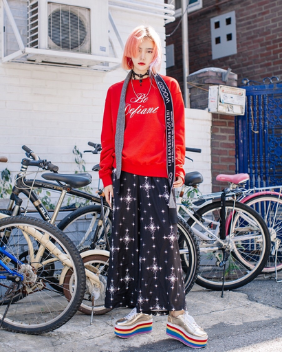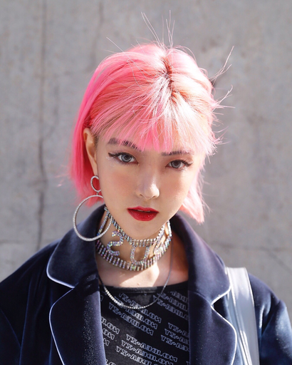 핑크색 머리를 보면 보통 사랑스러운 이미지를 떠올리게 된다. 하지만 제 패션 스타일은 과감한 믹스매치, 도전적인 펑크룩이다. 핑크색 헤어스타일의 사랑스러운 이미지와 상반된다. 많은 분들이 이런 반전 코드를 좋아해주시는 것 같다.