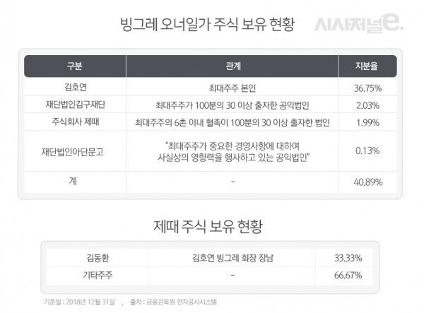하지만 구조조정 후 승승장구하던 빙그레에 최근 악재들이 연이어 발생했다. 김 회장의 차명주식이 국세청 세무조사에서 발견된 것이다. 2017년 7월, 빙그레 주식 29만 4070주를 차명으로 보유하고 있던 김 회장은 실명으로 전환했다. 당시 종가기준으로 이 차명주식의 가치는 약 200억원이었다. 차명주식의 실명 전환 후 현재 김 회장이 보유한 빙그레 주식은 362만 527주, 지분율은 36.75%다.