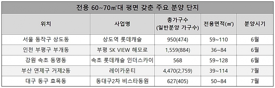 전용면적 70㎡, 실속파 수요자들에 인기···“59보다 넓고 84보다 저렴”