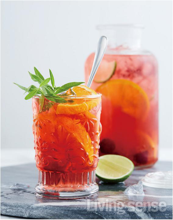 클레오파트라가 즐겨 마신 건강 차로 알려진 히비스커스에 비타민 C가 풍부한 오렌지와 라임을 넣어 감기 예방에 으뜸! 시럽 혹은 꿀을 첨가해 새콤달콤하게 즐길 수 있다.