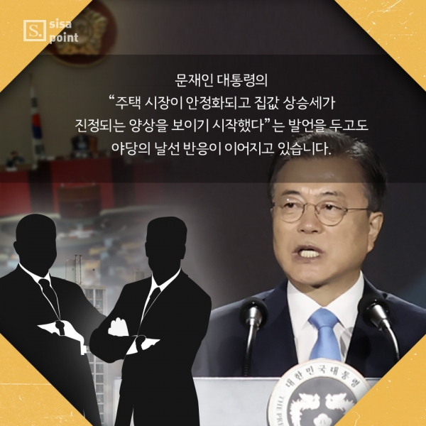 6. 문재인 대통령의 “주택 시장이 안정화되고 집값 상승세가 진정되는 양상을 보이기 시작했다”는 발언을 두고도 야당의 날선 반응이 이어지고 있습니다.