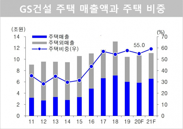 GS건설의 분양 확대는 주택을 포함한 기존 건설 부문을 성장 대신 현금흐름에 초점을 맞춘 결과다. GS건설은 그동안 해외 현장을 줄이고, 주택 분양 사업에 집중했다. 그 결과 상반기 기준 매출 비중은 건축·주택 부문이 56.5%로 가장 많은 비중을 차지하고 있다. GS건설은 내년에도 2만5000세대 수준의 분양을 계획하고 있어, 당분간 안정적 현금을 확보할 수 있을 것으로 예상된다.