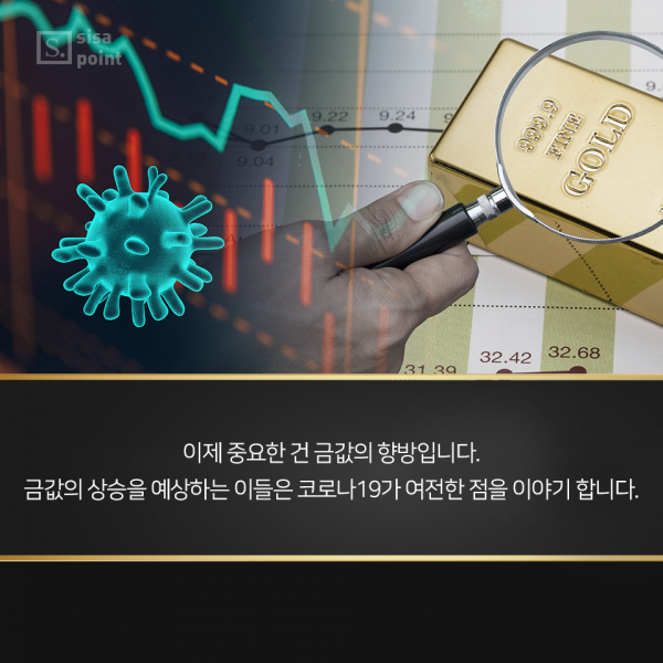 8. 이제 중요한 건 금값의 향방입니다. 금값의 상승을 예상하는 이들은 코로나19가 여전한 점을 이야기 합니다.