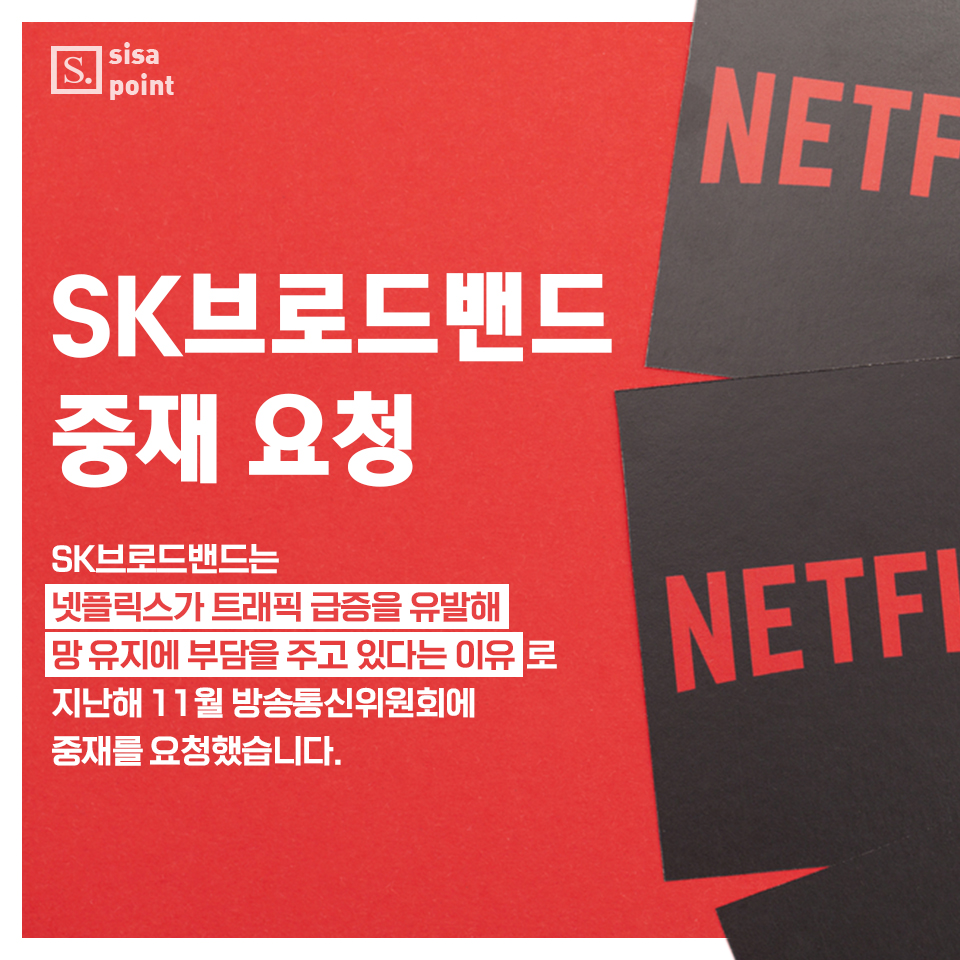 2. SK브로드밴드는 넷플릭스가 트래픽 급증을 유발해 망 유지에 부담을 주고 있다는 이유로 지난해 11월 방송통신위원회에 중재를 요청했습니다.