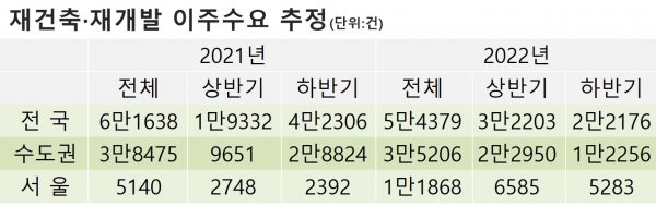 전문가들은 현재 직면한 전세난은 임대주택 공급으로 해결책을 찾되, 정비사업 이주는 이주용 임대주택 확보 등 중장기적인 구조 개선이 병행돼야 한다고 조언한다. 심교언 건국대 부동산학과 교수는 “이주시기 조정이 특정 시기에 몰리는 것을 예방할 수는 있겠지만 앞으로 더 많은 정비사업장이 나오게 되면 인위적 조정이 불가능해 진다”며 “지금부터 수요 관리를 하고 조합원들이 이주할 수 있는 임대주택을 확보해 별개로 움직일 필요가 있다”고 설명했다.